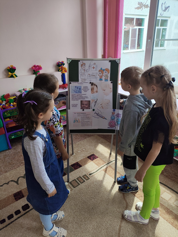 [DETAIL_TEXT] => В нашем детском саду прошли тематические беседы и занятия с детьми о необходимости иммунизации людей. Занятия были проведены по темам: «Откуда берутся болезни», «Я прививок не боюсь», «Как себя защитить». Медсестра Ерескина Наталья Витальевна провела с детьми подготовительных групп разъяснительную беседу «Как прививки защищают детей». В детском саду оформили выставку детских рисунков. Для родителей подготовили консультации и папки передвижки. Такие мероприятия помогают сформировать у детей и родителей положительное отношение к здоровому образу жизни, а также осознать, что прививки необходимы и всем нужно заботиться о своем здоровье и укреплять иммунитет.